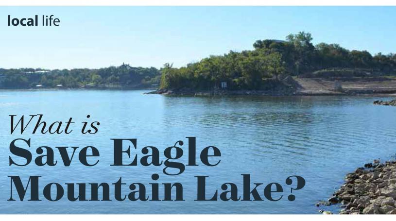 They accomplish this by continuing their support of the Watershed Protection Program, working closely with the Tarrant Regional Water District (TRWD), promoting the Integrated Stormwater Management program (iSWM) for new housing developments, and assisting Keeping Eagle Mountain Lake Beautiful through the local Beautification Society. Also in development is an End of Season Deep Cleaning program for the lake, Social Mixers around the lake to provide residents the opportunity to share their love of the lake, express any concerns, and learn how they can contribute to the Life of Eagle Mountain Lake.